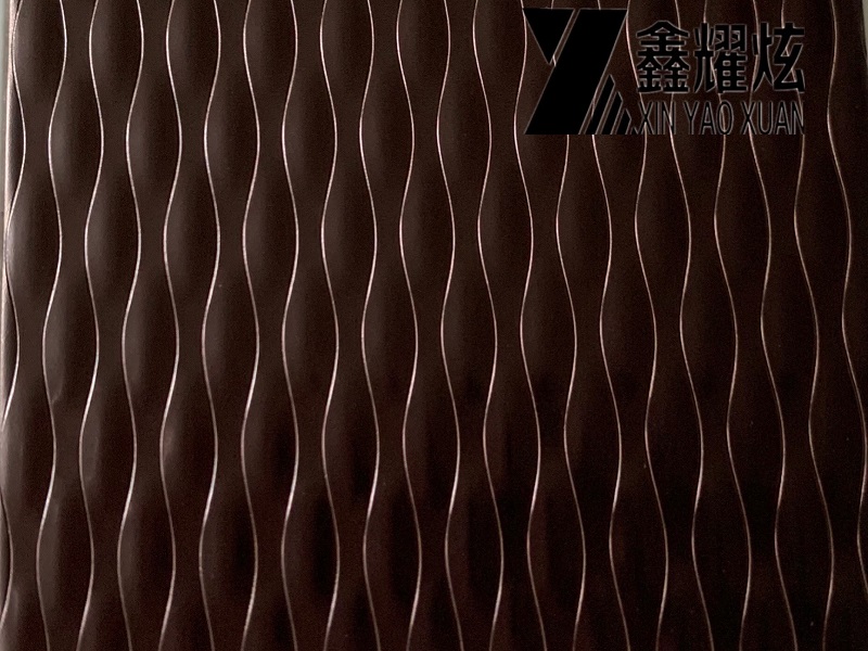 產(chǎn)品 Product: | 海浪紫壓紋不銹鋼板啞光防指紋處理 Embossed Purple Gold Stainless Steel Panel Honed Finish, ASTM 304 PVD Purple Gold Color Coating Embossed Stainless Steel Sheet |